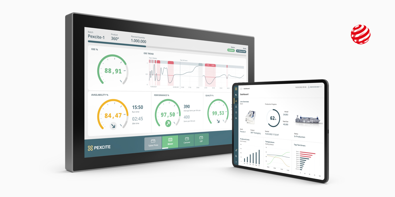 Die Pharmaindustrie und die Biotechbranche müssen die höchsten Standards erfüllen. Gleichzeitig sollen die sensiblen Produkte mit gleichbleibender Qualität hergestellt, sicher verpackt und zeitnah transportiert werden. Die Pexcite Plattform ist die technologische Basis für unterschiedliche digitale Lösungen. Zwischen den Lösungen können Daten ausgetauscht werden. Die Fertigung von sensiblen Produkten wird bestmöglich verwaltet. Man kann Pexcite am HMI der Maschine oder auf dem Tablet im Büro des Produktionsleiters aufrufen. Die Nutzerinnen und Nutzer werden durch die ausgefeilte User Experience des Systems bei ihren jeweiligen Tätigkeiten unterstützt.