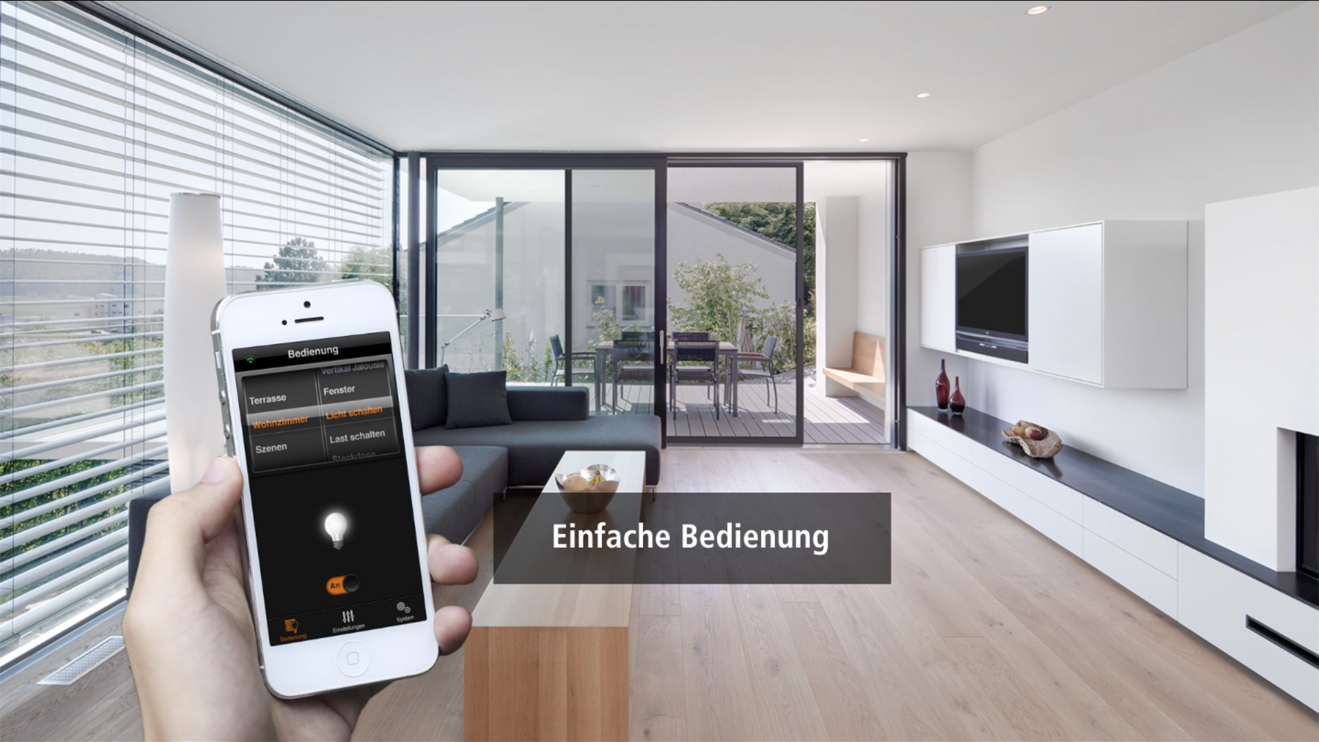 Das Ergebnis ist ein ergonomisch wertvolles User Experience Konzept und Design, das eine intuitive Bedienung einzelner SmartHome-Komponenten abbildet. Mit wenigen “Klicks“ lassen sich z.B. Raffstores hoch- und herunterfahren, deren Lamellen ausrichten und Lichter steuern.